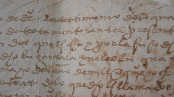 Si prestan atención, en la imagen se puede leer entre otras cosas “… lugar de talayuelas…” “…mayo del año de mil e quinientos y ochenta y ocho…”. 1588 seria pues la datación para este documento del que este verano hablaremos en las conferencias que cada año se programan.