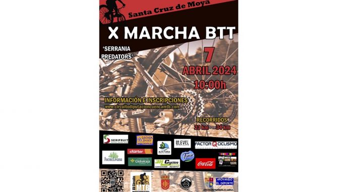 La décima edición de la Marcha BTT ‘Serranía Predators’ se disputará el próximo 7 de abril en la localidad de Santa Cruz de Moya con dos recorridos de 23 y 34 kilómetros.
