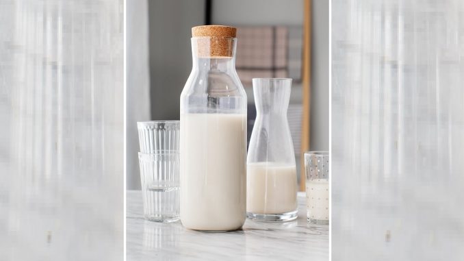 Coloca el colador de malla fina sobre un tazón grande y cuela la leche sin empujar el exceso de pulpa a través del colador. esto creará una textura más cremosa que no es arenosa ni pegajosa.