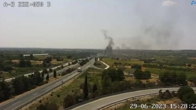 Un camión cisterna ha volcado en el kilómetro 231 de la A-3, en sentido Madrid, a la altura de la localidad conquense de Granja de Iniesta. El vehículo de grandes dimensiones ha comenzando a arder y ha generando una gran columna de humo. Según han informado fuentes del Servicio de Atención y Coordinación a Urgencias y Emergencias 112 de Castilla-La Mancha, los hechos han tenido lugar sobre las 14.22 horas de este jueves.